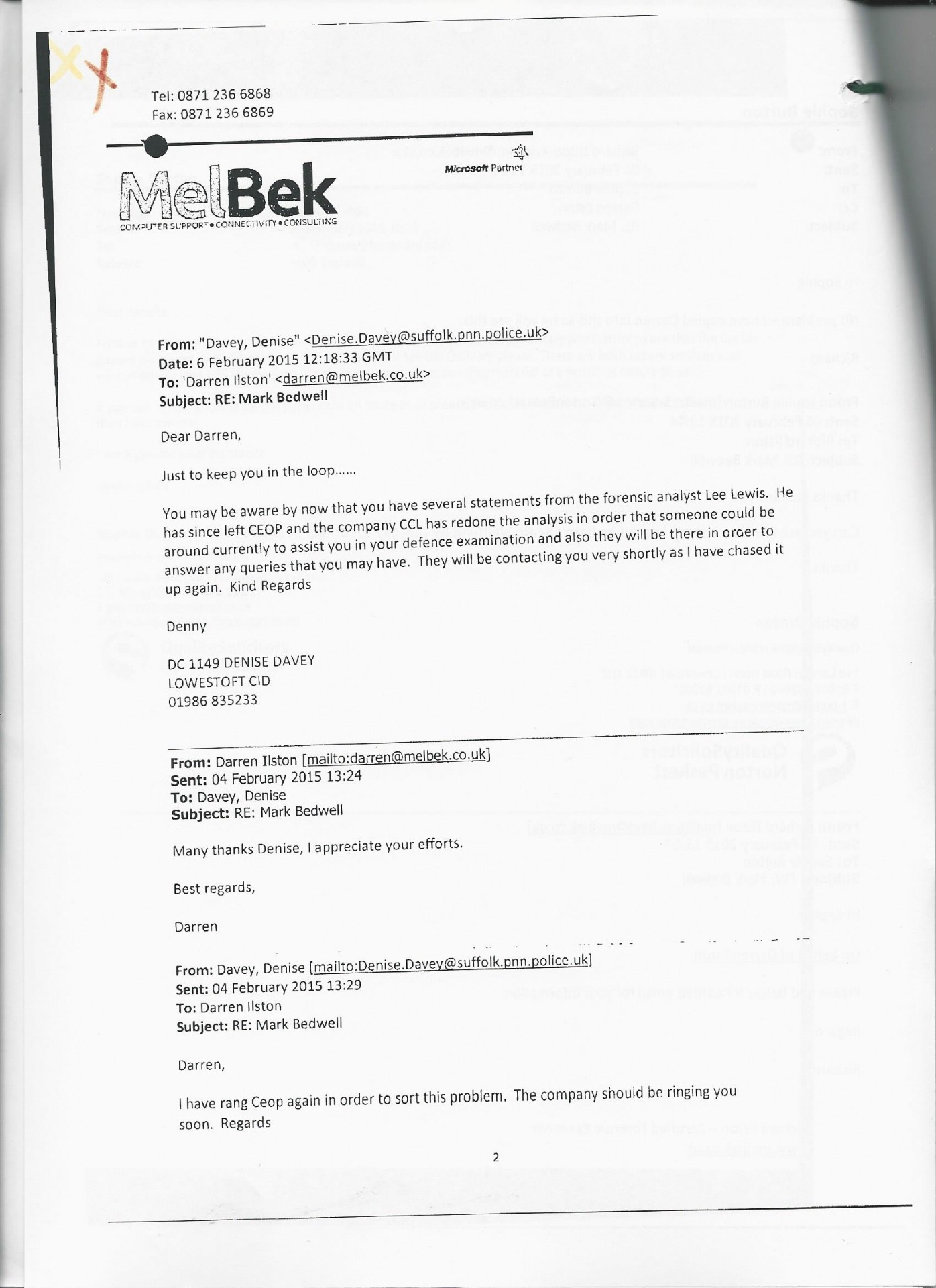 On 25th February 2014 DC Davey of Suffolk Police (the officer in charge of the